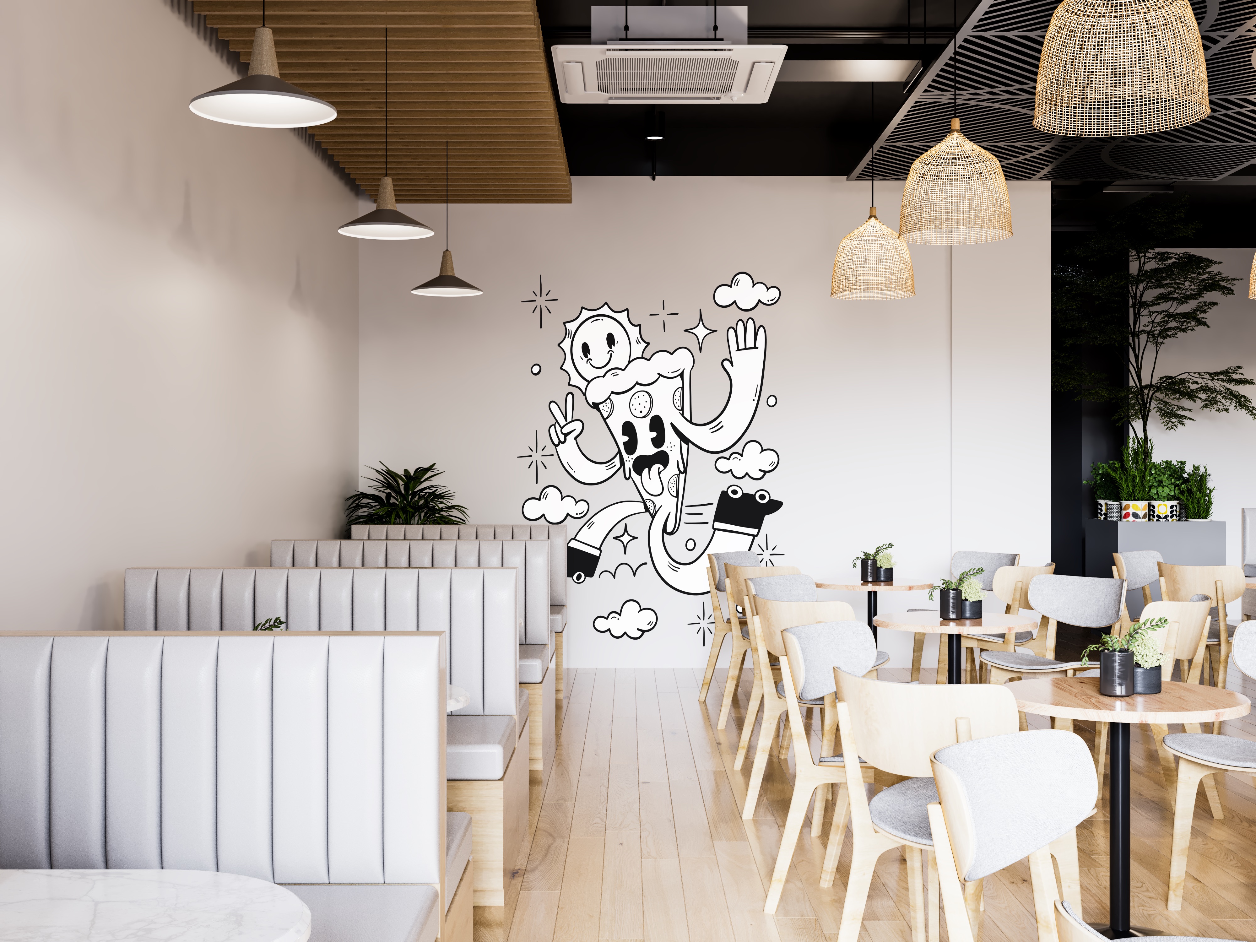 Installer un sticker mural professionnel ou un papier peint à colorier transforme immédiatement un espace accueillant du public.