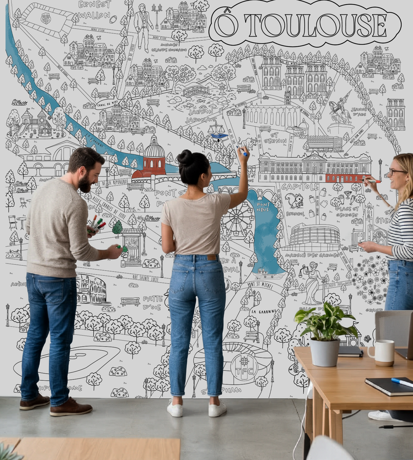 Un papier peint coloriage géant qui ancre vos espaces dans une identité forte.