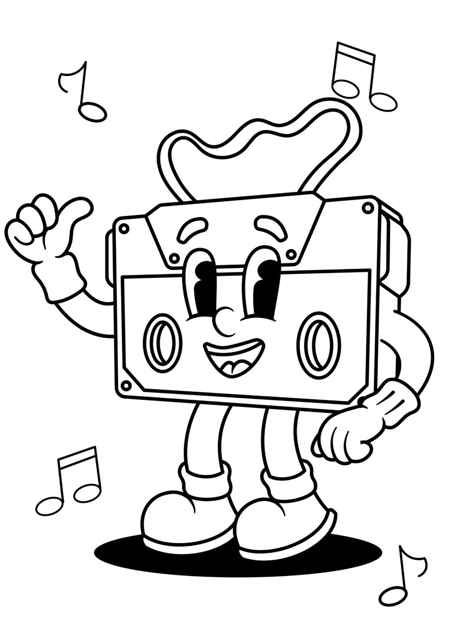 Découvrez le sticker mural à colorier "Au bout de la bande" : une cassette audio stylisée en cartoon avec des pouces en l’air, dessinée en contours noirs pour que vos enfants puissent la personnaliser en couleurs.