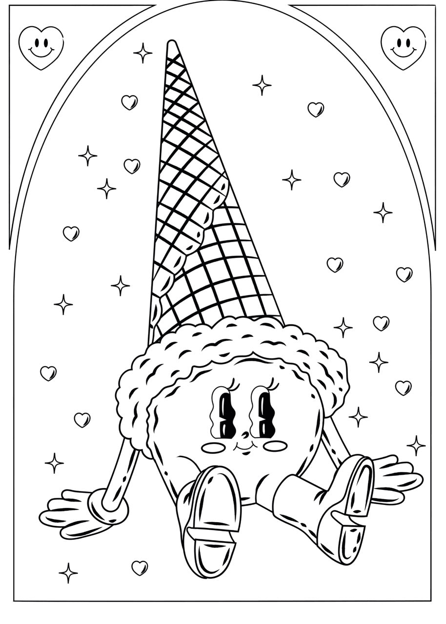 Ce sticker mural à colorier représente une boule de glace détendue, affublée d’un bonnet trop mignon et de baskets stylées, le tout dans un style cartoon plein de caractère. Pensé pour les adultes qui veulent s’évader, se détendre ou simplement ajouter une touche d’humour graphique à leur déco, ce sticker est une invitation à ralentir… et à dégainer ses feutres.