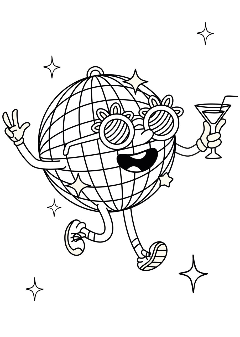 "Gin & Glitter", c’est votre dose murale de paillettes et de second degré ! Cette boule à facettes en mode cartoon, lunettes funky sur le nez et cocktail à la main, dégage une énergie disco totalement irrésistible.