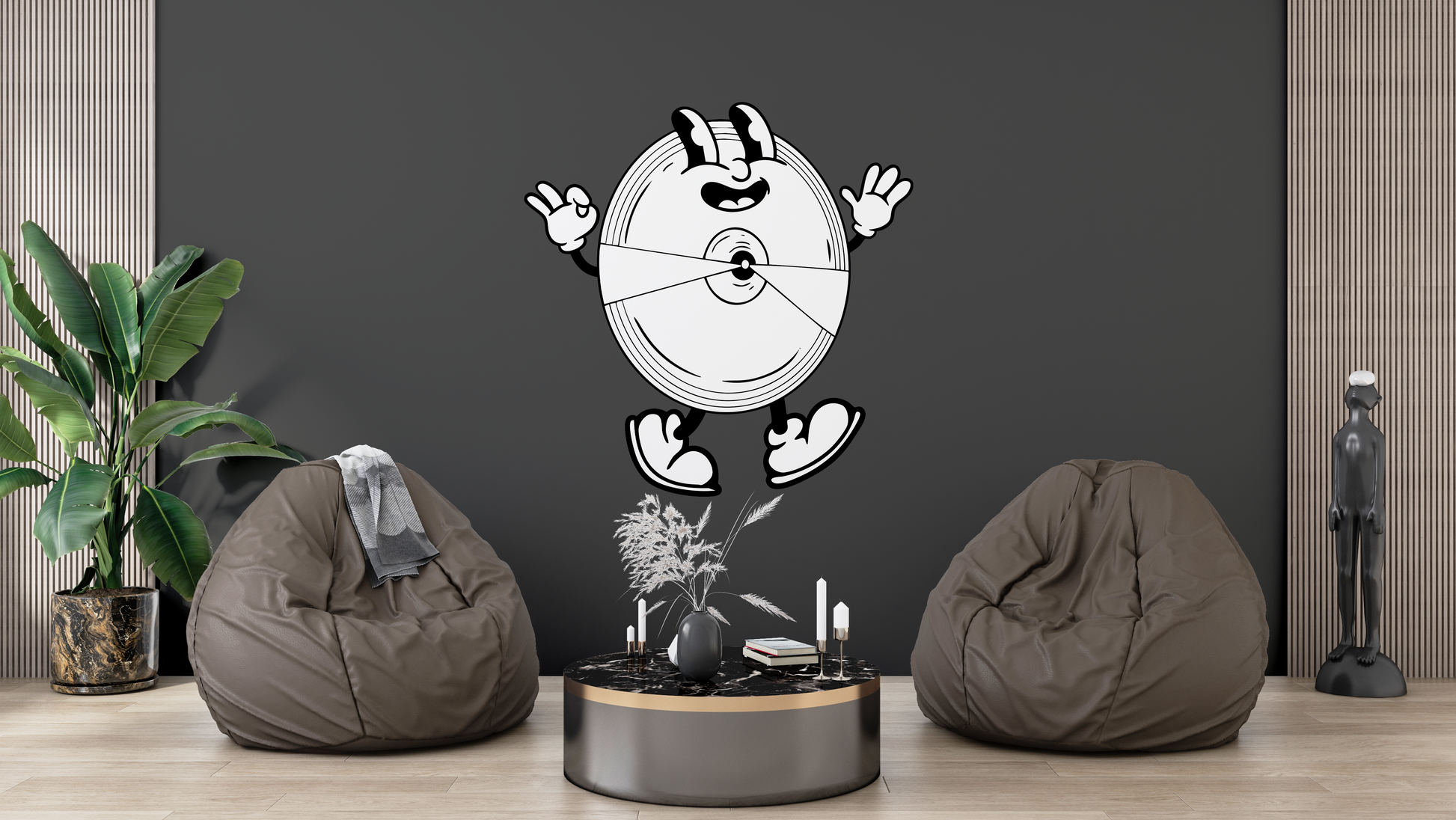"Ça roule", c’est le groove en marche ! Ce sticker mural à colorier met en scène un vinyle version cartoon, chaussé et en mouvement, prêt à ambiancer votre déco avec une touche vintage et décalée.