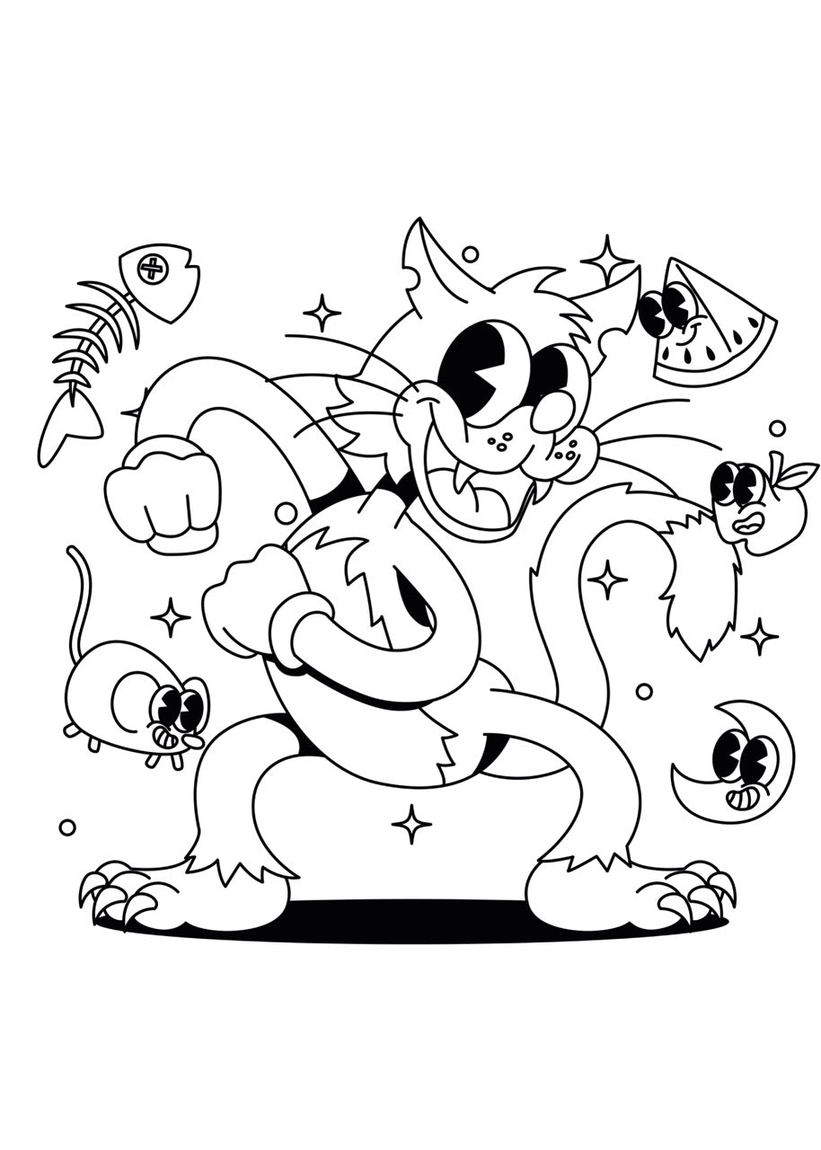 Le sticker mural à colorier "Chat Chat Chat" met en scène un chat dansant, tout en courbes cartoon et en bonne humeur communicative.