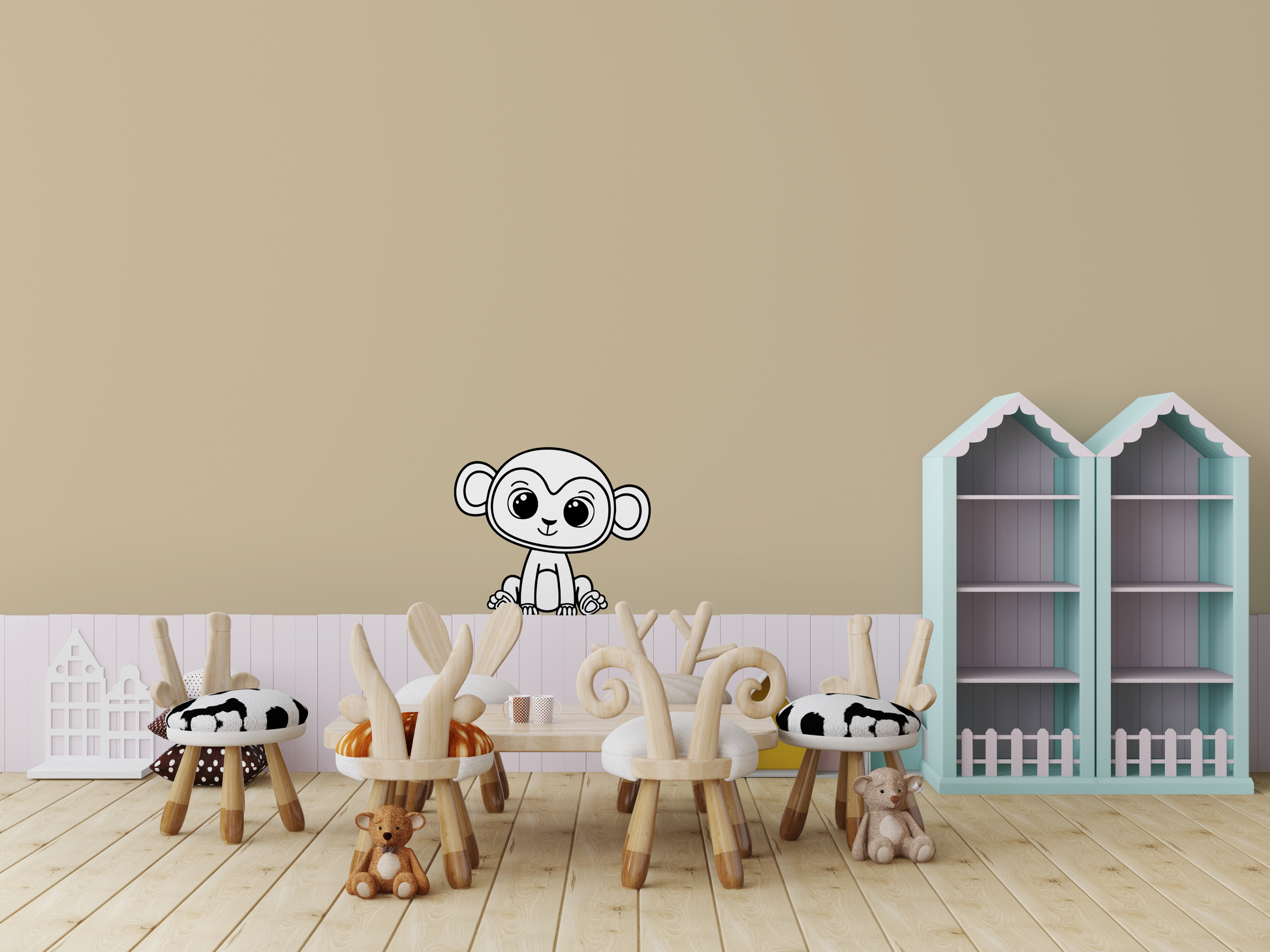 Elles jouent le rôle de petite barrière invisible autour des zones à colorier, pour que les enfants puissent s’exprimer librement… sans empiéter sur le mur.