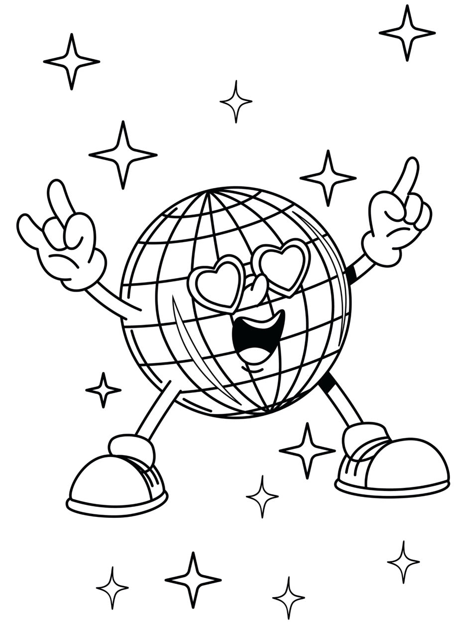 Avec ses lunettes cœur, ses bras levés au ciel et son énergie déjantée, elle vous invite à colorier la fête murale ultime.